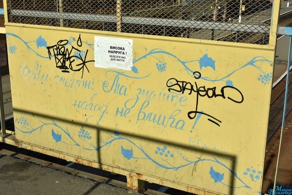 Три роки тому в рамках масової акції непривабливий перехід біля залізничного вокзалу прикрасили словами славетних земляків, пофарбували в синьо-жовтий колір.