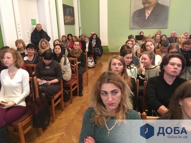 — Я не вчитель, тому важко про це говорити, але я людина, якій не байдуже, тому прийшла на зустріч. Багато з того, про що йшла мова, я почала втілювати на своїх заняттях з дітьми. Для прикладу, діти мене не називають по-батькові, просто Ліля. Приходжу до них, кажу: « Привіт». От в нас в Тернополі мають спорудити пам’ятник вчителю, щоб підвищити авторитет професії. Як можна авторитет підняти пам’ятником? Але багато вчителів не хочуть бути авторитетними, вони хочуть бути авторитарними. Нам потрібні інші методи, — переконана Лілія Проць.