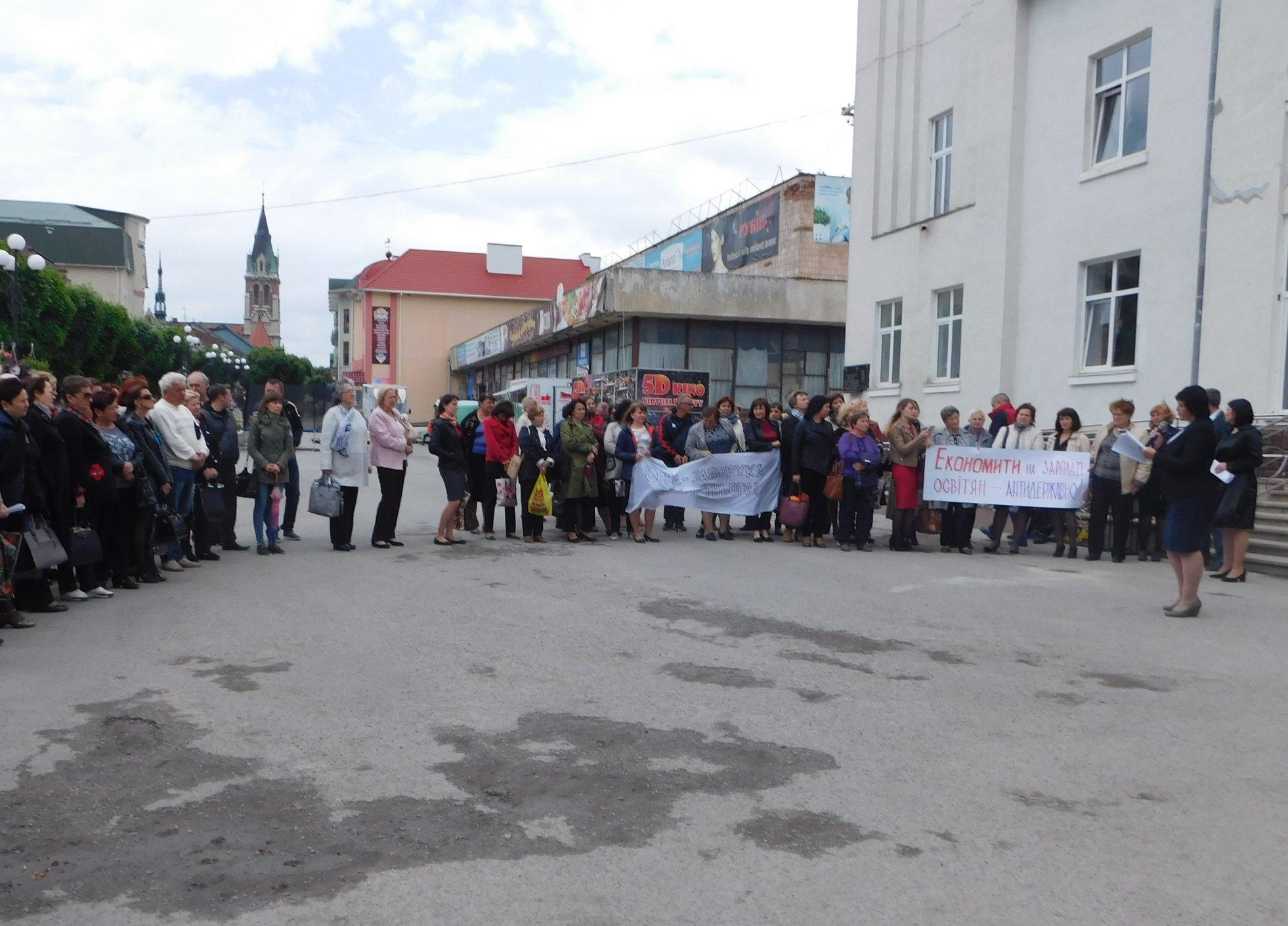 У зв’язку із затримкою виплати заробітної плати, а також із зменшенням розміру надбавки за престижність педагогічним працівникам з 20 % до 5 % близько 100 вчителів чортківських загальноосвітніх шкіл вийшли на мирну акцію протесту.