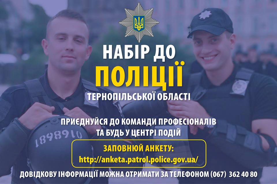 Управління патрульної поліції в Тернопільській області оголосило набір в підрозділ Тактико-оперативного реагування(ТОР).