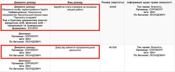 Корупційна складова стосується не самого приватного бізнесу Івана Сороколіта, а конфлікту інтересів між чиновником-Сороколітом (директором комунального підприємства) та бізнесменом-Сороколітом (власником двох компаній). Так деякі види діяльності комунального підприємства Тернопільської міської ради «Тернопіль Інтеравіа» (директор Сороколіт І.Л.) ідентичні видам діяльності малого підприємства «Фірма «ІС Інфо» (власник Сороколіт І.Л.).