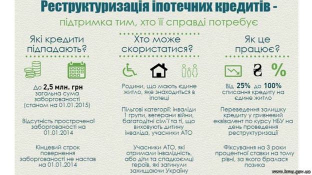 Зокрема, уряд пропонує реструктуризацію кредитів, загальна сума заборгованості по яких на 1 січня 2015 року не перевищувала 25 млн грн, а також: