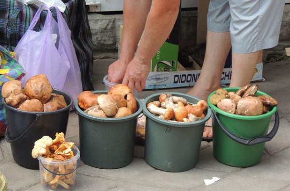 …Житель з району привіз на продаж до обласного центру близько 10 кілограмів білих грибів. Чоловік розклав свій крам по торбинках «за якістю» – молоді грибочки по 150 гривень за кіло, середні за розмірами – по 120 грн./кг, а решту – по 100 грн./кг. Гриби-лисички продає за 40 гривень за літр, або ж по 100 грн./кг. Пані Люба торгується, проте продавець ціни не знижує: «То ж вам не якісь волинські, а справжнісінькі білі гриби із наших лісів». Перепитую у продавця, що ж не так з волинськими грибами. Чоловік пояснює: «Якщо хочете добрих грибочків до столу, чи замаринувати, то оминайте продавців із Волині – там якусь біду у грибах знайшли». Жартома запитую, як же розпізнати, чи продавець, чи з Волині, якщо жодних документів вони не мають. Продавець серйозно пояснює, мовляв, галицьку говірку із волинською не переплутаєш.